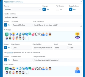 🔹 **Tab-ul “Appearance”** – Designul vizual al asistentului medical