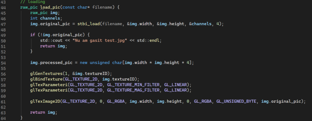 #include “stb_image.h” – cititorul de imagine. Cu ajutorul ei vom trasnforma poza intr-un sir urias de numere in RAM, adica pixelii.